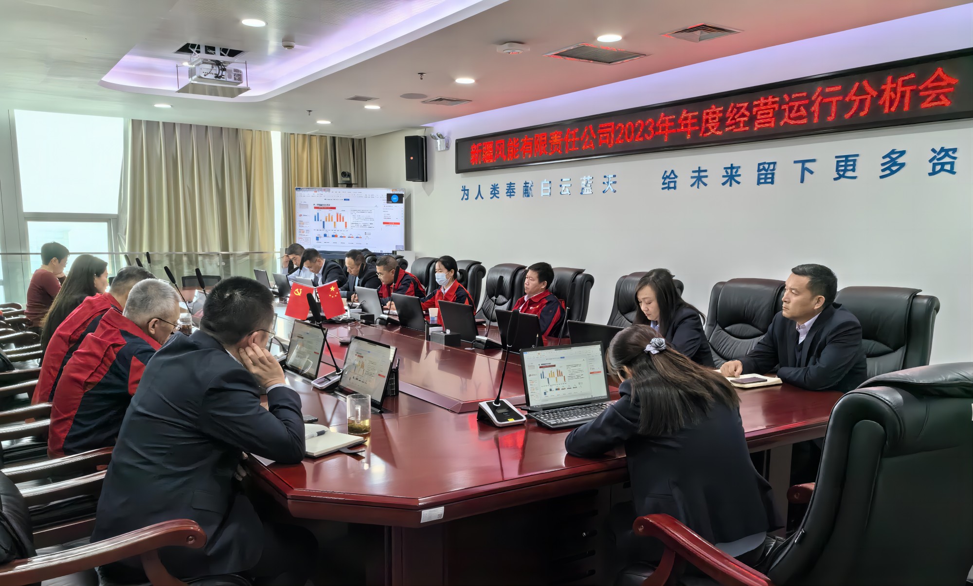 (通訊員/攝影(yǐng) 張維娜)為全麵總結2023年度經營成果,明確2024年戰略目標,1月(yuè)23日(rì),新疆風能有限責任公司召開2023年年度經營運行(háng)分析會。黨委副書記、總經理李雪梅出席會議並講話,財務總監主持會(huì)議,公司領導班子成員、高級管理人員(yuán)、各部(bù)門負責人、各場(站)負責人參加會議。會議采取“現場會+線上”的形式召開。