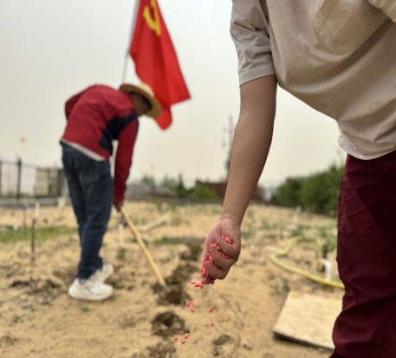 五月的皮山光伏電站春意盎然,處處(chù)迸發著生機和活力,在支部的號召下,電站全體(tǐ)黨(dǎng)員職工紛紛拿起鐵鍬、鋤(chú)頭(tóu),投入到植(zhí)樹造綠的勞動中。他們挖坑(kēng)、培土、澆水,每一道工序(xù)都做得認真細致,以實際行動為沙漠充“植”增綠。隨著時間的推移,原本荒涼的沙漠戈壁上,一叢叢、一簇簇的綠色生命迎風(fēng)搖曳,綻放出綠色生機。