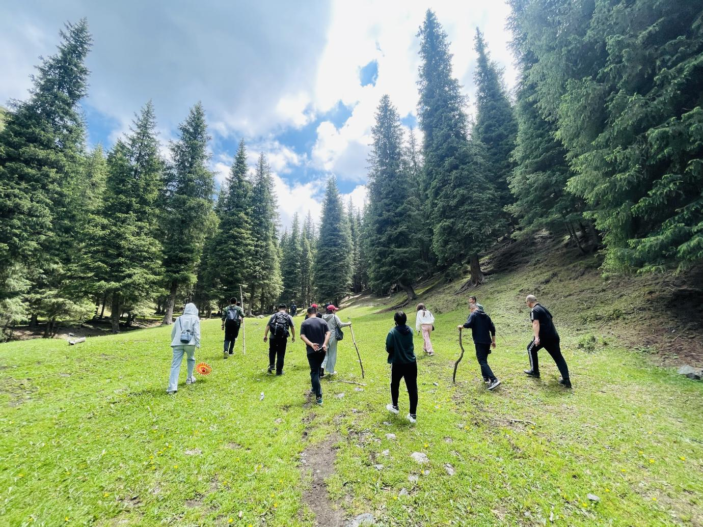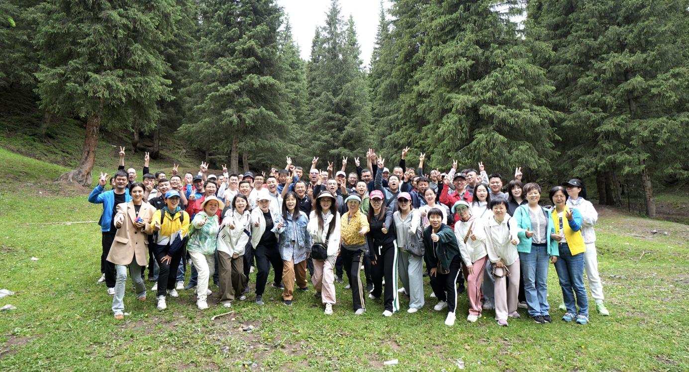 天山草場草色(sè)如茵(yīn)、綠意盎然,如畫的風景令人心曠神怡。大家健步走在徒步大道上,呼吸著新鮮的空氣,感受著大自然的風光。一(yī)路(lù)上,大家邊走邊聊,時而駐足欣賞,時而選景拍照,歡歌笑語(yǔ)如影隨形。本次徒步行程近5公裏,大家互相鼓勵、一往無前,經過一個(gè)半小時的努力,終於(yú)順利抵達目(mù)的地。