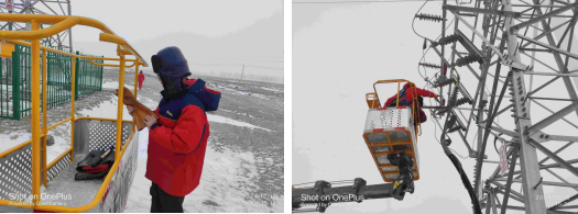 在暴風雪期間,風電場的應急響應機製發揮重要作用(yòng)。當值人員發現Y2機組(zǔ)報三相電壓不平衡故障時,迅速行動(dòng),經(jīng)現場檢查確認(rèn)為隔離刀(dāo)閘脫落故障。風電場立即組織人員準備工器具(jù),結合風速預測和現場風速變化情況,利用倒風(fēng)向的窗口期進行了倒閘操(cāo)作,並利用登(dēng)高車(chē)對Y2機組隔離開關(guān)進行了處理。整個過程,從停送電操作到故障處理,僅用了20分鍾(zhōng),完美的詮釋了什麽叫做“風能速度”。
