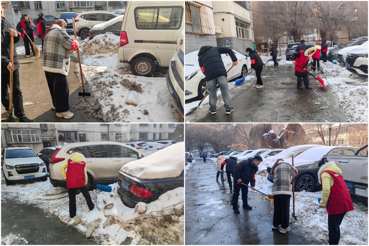 3月5日上午,烏魯木齊市突降大雪,老舊小區(qū)道路積雪結冰嚴重,給居民出行帶來安全隱患。為切實踐行“我為群眾(zhòng)辦(bàn)實事”,保障大家的出行安全,風能公司迅速響應昆明路社區號召,組織黨員幹(gàn)部職工迅速行動,與社區誌願者分成多個小組,帶上掃帚、鐵(tiě)鍬、推雪板等清(qīng)潔工具(jù),對公司周(zhōu)圍老(lǎo)舊小區的環境衛生及路麵積雪進行全麵整治。隨著中午(wǔ)溫度回(huí)升,部分積雪融化導致路麵濕滑、泥濘不堪,且小區(qū)設施老舊、缺乏專業清雪設備、這給清掃工作帶來了極大的不(bú)便。但誌願者們幹勁不減,大家相互配合、齊心協力,有(yǒu)人用鐵鍬鑿(záo)開角落處堆(duī)積的厚重冰層,三、兩人合(hé)力推運積(jī)雪、冰層至集(jí)中(zhōng)點(diǎn),還有人拿著掃帚(zhǒu)清掃殘留的雪渣,防止路麵再次結冰打滑。經過數個小時的奮(fèn)戰,及時消除了老舊(jiù)小區因積雪結冰(bīng)帶來的安全(quán)隱患,小區路麵(miàn)環境煥然一新。