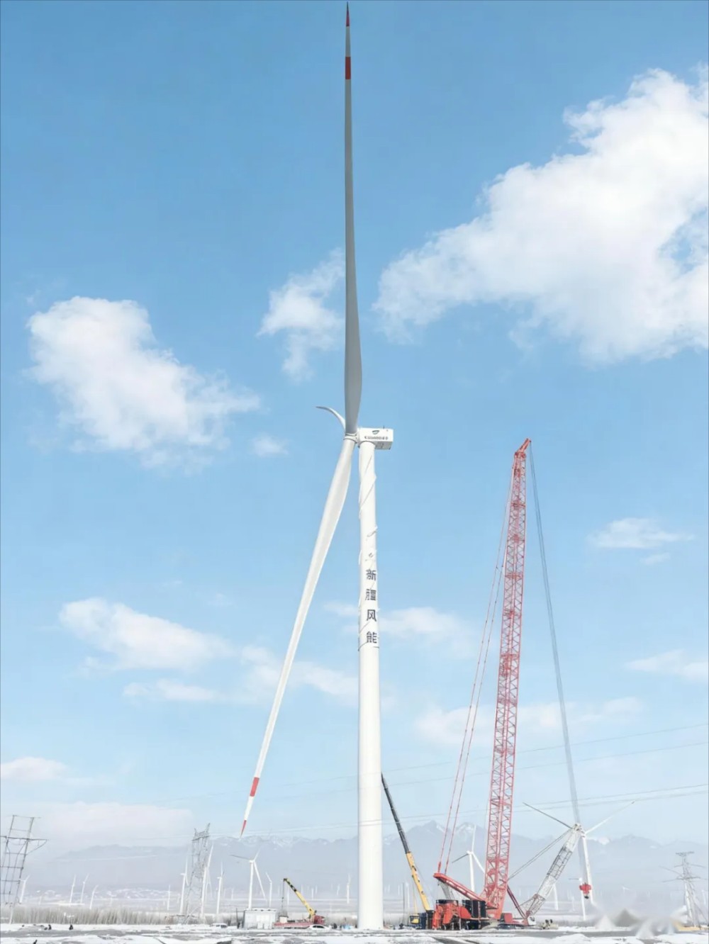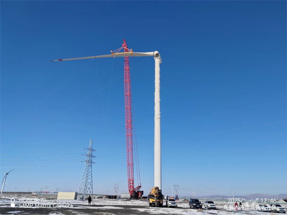 作為疆內較早建成的風電場之一,達阪(bǎn)城(chéng)風電一場承(chéng)載著(zhe)區域風電產業起步與發(fā)展的厚重記(jì)憶。曆經多(duō)年運行,原有機組逐漸麵臨設備老(lǎo)化、發(fā)電(diàn)效率下滑(huá)等(děng)問題,為破解發展(zhǎn)瓶頸,公司果斷啟動升(shēng)級改造工程,即拆(chāi)除低效舊機組,引進金風科技7.5兆瓦較大容量風電機組。該項目自啟動(dòng)以來(lái)便麵臨多重挑戰,特別是(shì)進入冬季以來,達阪城區域風力(lì)常達5級以(yǐ)上,惡劣天氣不僅給施工人員帶來身體考驗,更對吊裝作業的安全性和精準度提出極高要求。加之冬季白晝時間短,有效作業窗口期大幅壓(yā)縮,進一步增加了(le)施工難度。為確保項(xiàng)目推進,項目團隊提前研判區域氣候(hòu)規律,製定針對性冬季施工方案,將科學組織與精細管理貫穿始終。從塔筒起吊、機艙就位(wèi)到葉片精準對接,每一個環(huán)節都凝聚(jù)著建設者的智慧與堅守(shǒu)。同時,為確保巨大部(bù)件在(zài)風雪中平穩(wěn)吊運至預定位(wèi)置,項(xiàng)目組全程落實風險管控措(cuò)施,細化安全預案,對設備狀態、作業環境進行實時監測,最終成功實現“零事故、零傷(shāng)害”的安全生產目標。